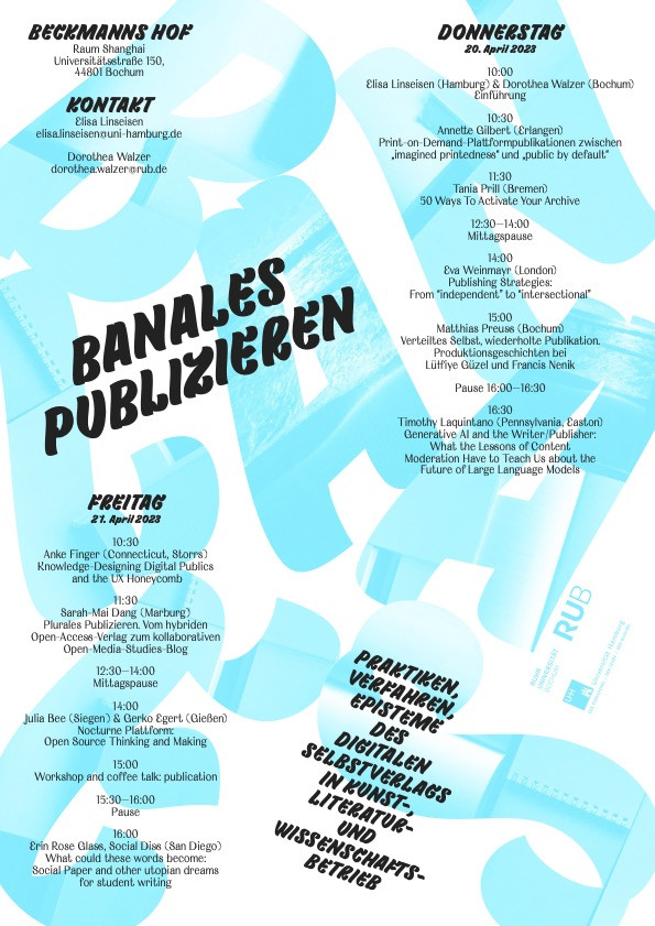 Wir freuen uns über Publikationspraktiken, Open Access und banales Publizieren zu diskutieren.