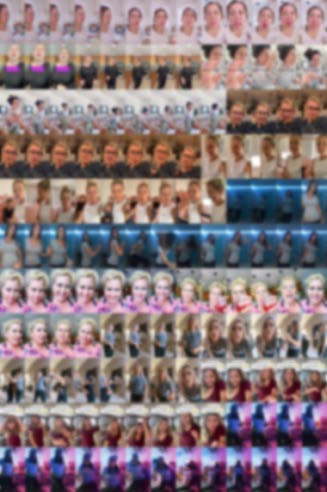 Figure 1: Performative memes captured in a montage of 143 frames extracted from a sample of ten #boredinthehouse #tiktokmoms videos sharing the same speech template: “I have TikTok now… What do I do? Do I just sing? … CAUSE I’M BORED IN THE HOUSE, BORED IN THE HOUSE, BORED, BORED IN THE MOTHERF*CKING HOUSE, BORED …” The number of frames per video corresponds with the varying video length. A Gaussian blur was applied to ensure deidentification while preserving the focus on gestures.