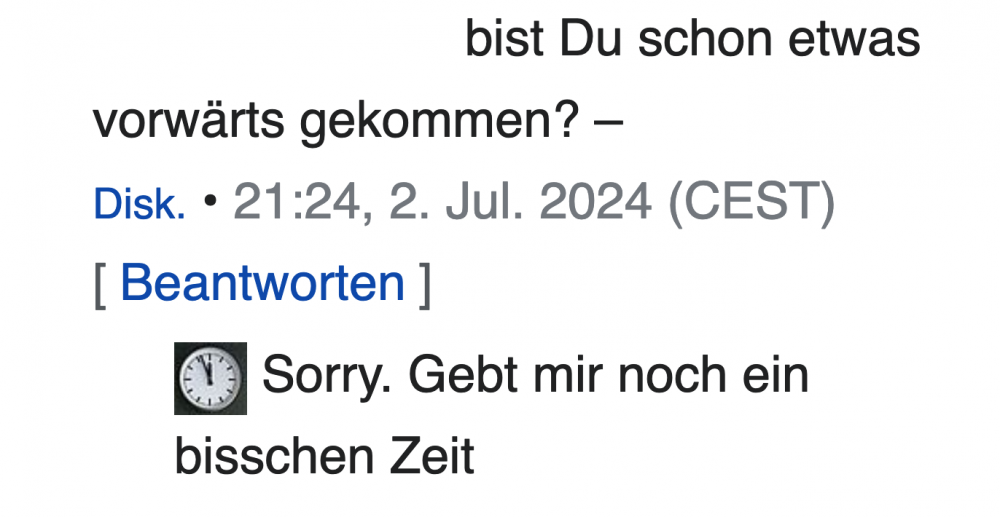Zeit ist kostbar und rar. Editieren bedeutet noch mehr Screentime, noch mehr unbezahlte Arbeit. Behandelt sie also behutsam. Wann und wie lange ihr an der Filmografie eurer Lieblingsregisseur:in oder an Artikeln über Seepferdchen und andere Knochenfische schreibt, ist euch überlassen. Geratet ihr unter Zeitdruck, zum Beispiel weil ein Artikel zur Löschung vorgeschlagen wurde, dann entscheidet ihr, ob und wann ihr euch damit befasst. Bittet euch jemand um umgehende Antwort, habt ihr das Recht, zu prokrastinieren. Macht Gebrauch davon. Wissen in die Wikipedia einfließen zu lassen, kann zähe Arbeit bedeuten. Sofern euch diese Arbeit zu sehr einnimmt, anstrengt oder auslaugt, verweigert sie.